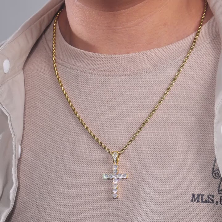 This elegant cross pendant captures the quiet strength of faith through the timeless shimmer of sterling silver and white cubic zirconia. Designed for those who carry their light with grace—refined, confident, and radiant.